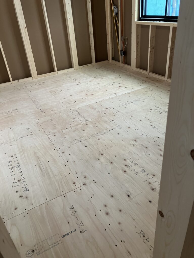 断熱材及びフローリングが貼られる前です。素晴らしく綺麗です。スリッパがいらない位!