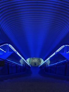 その途中にはカレイドスコープ(万華鏡)の照明の天井が!