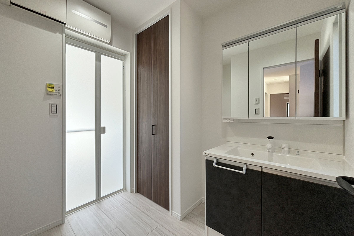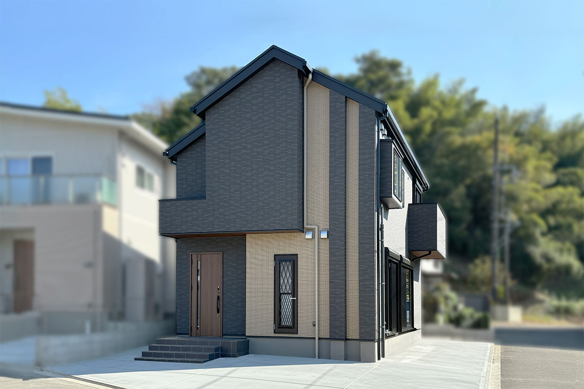 縦ラインのアクセントが映える、スタイリッシュな外観。総タイル貼りで、永く美しい姿を保ちます。