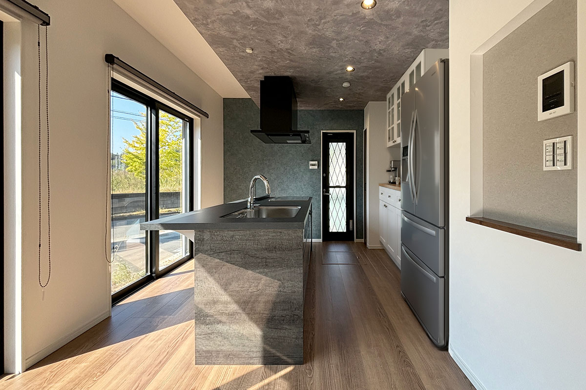 上質な雰囲気を演出するキッチン。勝手口は駐車場とつながっており、買い物後の荷物運びもスムーズです。