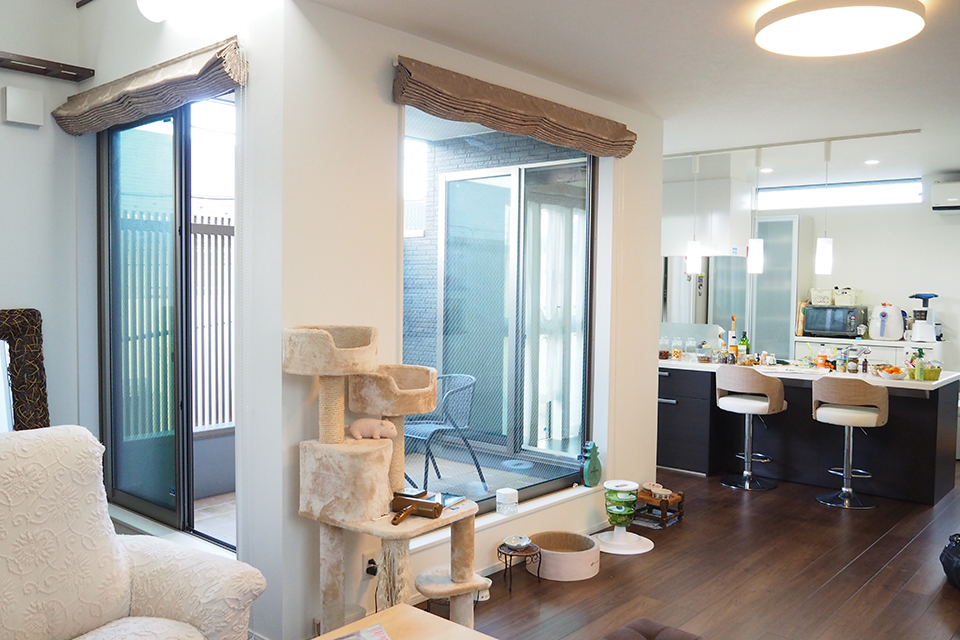 猫たちが日向ぼっこできる暖かな日差しが差し込む窓際があることも、T様が家づくりをするときにこだわったポイントでした。