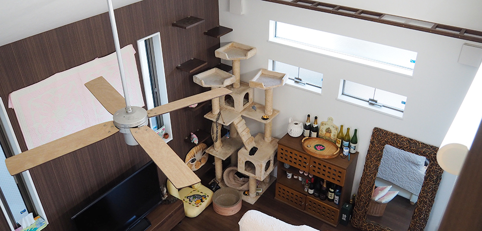 猫と人間が快適に暮らす住まい――。猫がたくさんいると傷やニオイが気になるものではないか、と不安に思う人もいるかもしれませんが、床は傷に強いタイプのものを採用してあり、ニオイも気になることはありませんでした。猫を愛するT様と、猫たちの気ままな暮らしが垣間見られた、心温まる取材となりました。