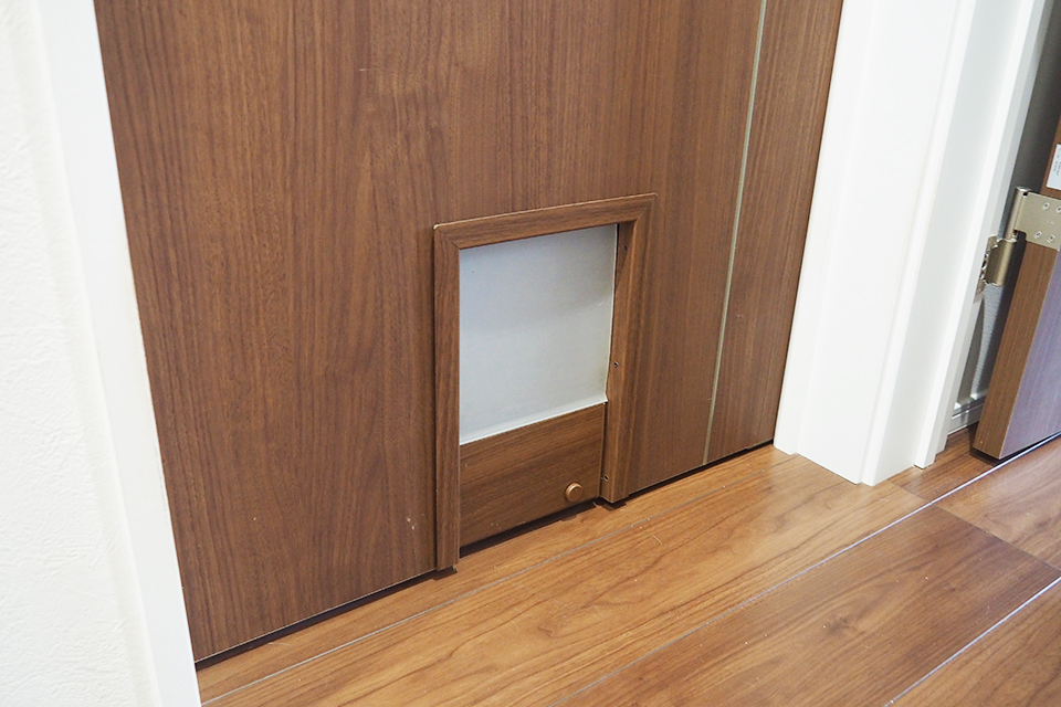 寝室のドアには猫用のドアを設置。クロゼット以外は自由に猫が出入りできます