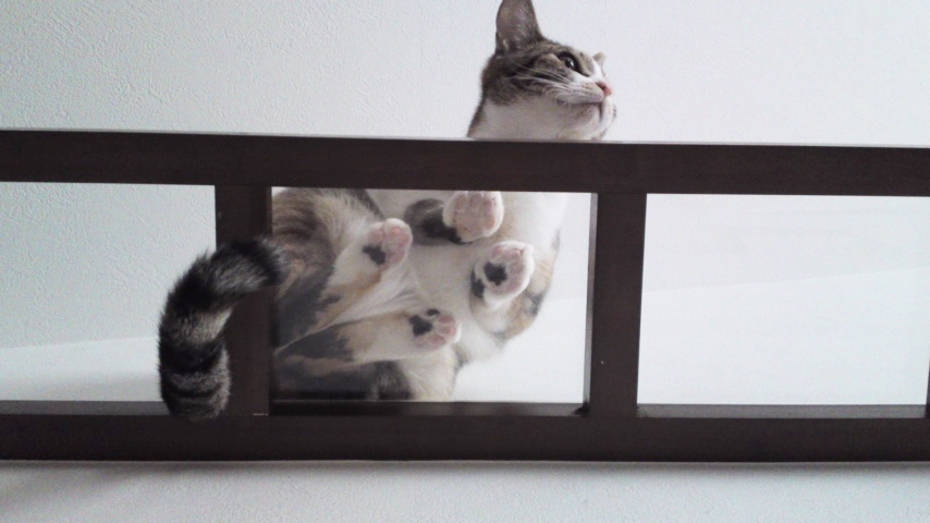 キャットウォークには一部アクリル板を取り付けました。「ちょっと猫が一休みすることもできますし、なにより肉球が見えて萌えるでしょ(笑)?」