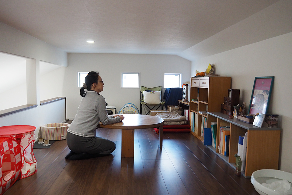 ロフト部分は大人が中腰になって歩くほどの天井の高さです。T様は勉強部屋として活用しているそう。「座って勉強するので、天井の高さは気になりませんよ」